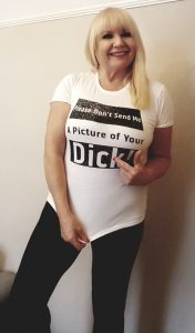 I recently made first contact with a seemingly nice guy on Bumble we had a text conversation and I suggested ‘the chat!’ That was two weeks ago I am still waiting. He also threw in a few unusual questions and I answered on impulse and am now wondering if there were some hidden meanings. Besides telling me that he wanted to achieve his ‘older woman’ merit badge he then threw in that he had a really naughty picture! I immediately sent him a picture of me in the “please don’t send me a picture of your dick tshirt” This is proving to be a good deterrent to the inevitable purple and red offering.